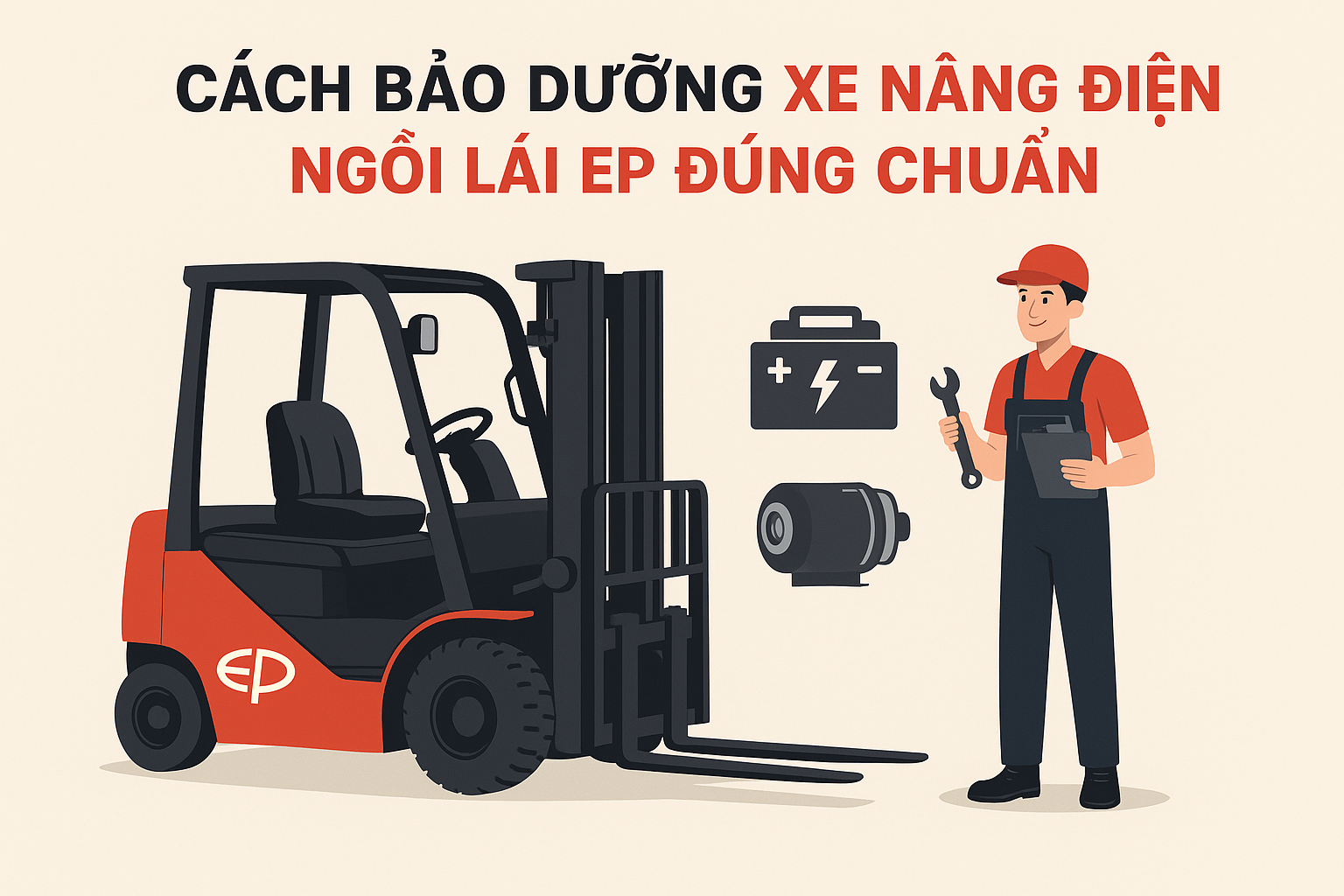 如何正确保养EP电动叉车(坐驾式) EP电动叉车在越南越来越受欢迎,因其高效能、低运营成本和安全性而广泛应用。然而,为了保证设备的耐用性并减少故障,正确的EP电动叉车保养非常重要。 以下是详细的EP坐驾式电动叉车保养指南。 1. 每日检查(操作前后) 锂电池/铅酸电池:检查电量,不要低于20%。铅酸电池需要时补充蒸馏水。 轮胎与转向系统:检查PU/橡胶轮胎磨损情况,方向盘需灵活。 制动与警示装置:确保刹车灵敏,喇叭与灯光正常。 液压油:检查油位,观察油管与油缸是否漏油。 2. 每周保养 清洁叉车,特别是电池舱和电机。 检查并紧固电气接头。 给运动部件加注润滑脂。 测试升降与行驶功能。 [...]